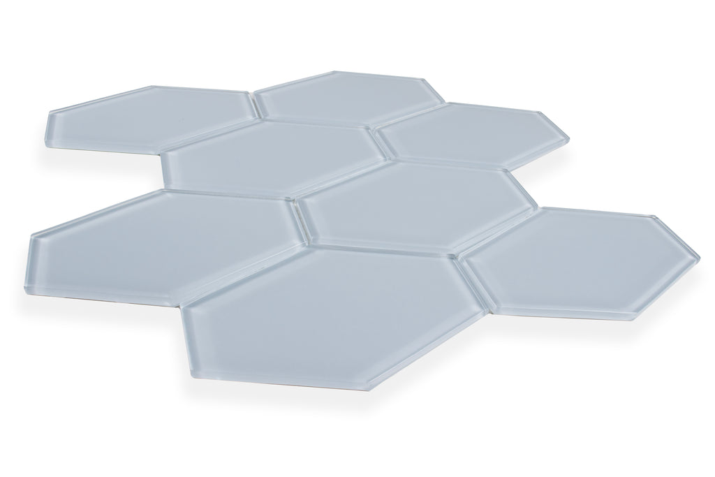 Shimmering monochromatic ripples of Elongated Hex tiles create a clean, sophisticated space with the peaceful demeanor of a spa. These glass mosaic tiles, offered in 9 soothing aquatic tones are available in both matte and gloss finishes.