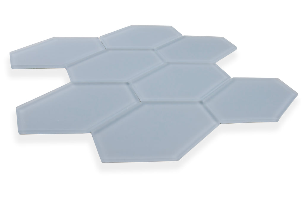 Shimmering monochromatic ripples of Elongated Hex tiles create a clean, sophisticated space with the peaceful demeanor of a spa. These glass mosaic tiles, offered in 9 soothing aquatic tones are available in both matte and gloss finishes.