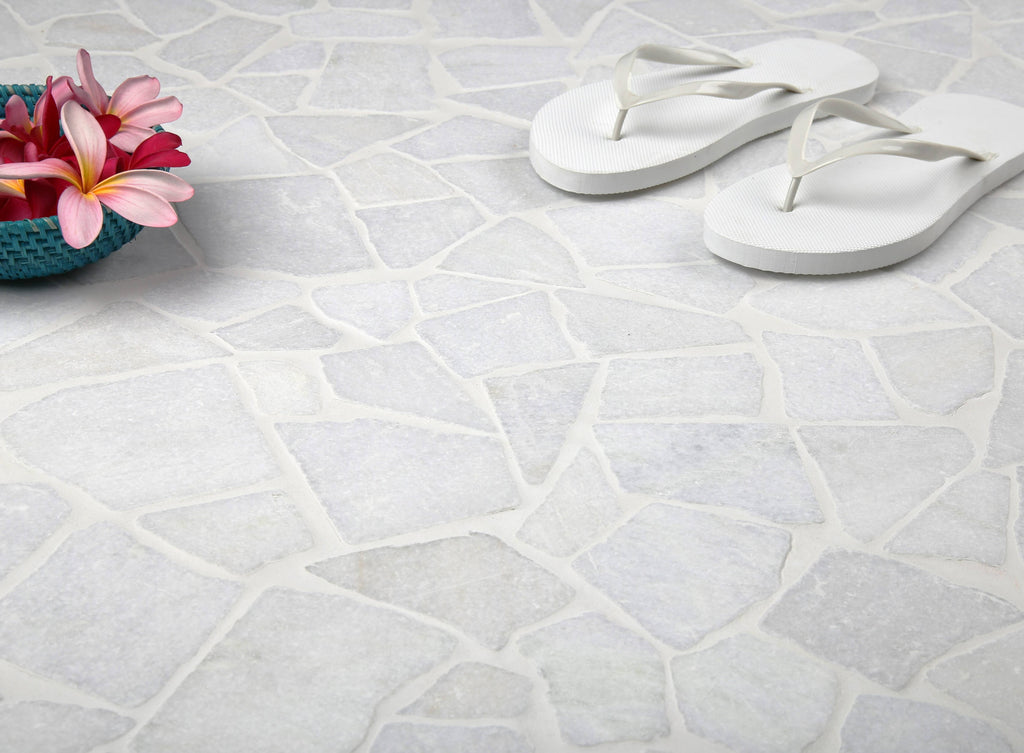 A perfect option for expansive interior floors and walls as well as outdoor areas including patios and courtyards, Large Random exudes a rustic presence through the use of tumbled stones varying in size and shape. The large, irregular stones make a tastefully bold statement.