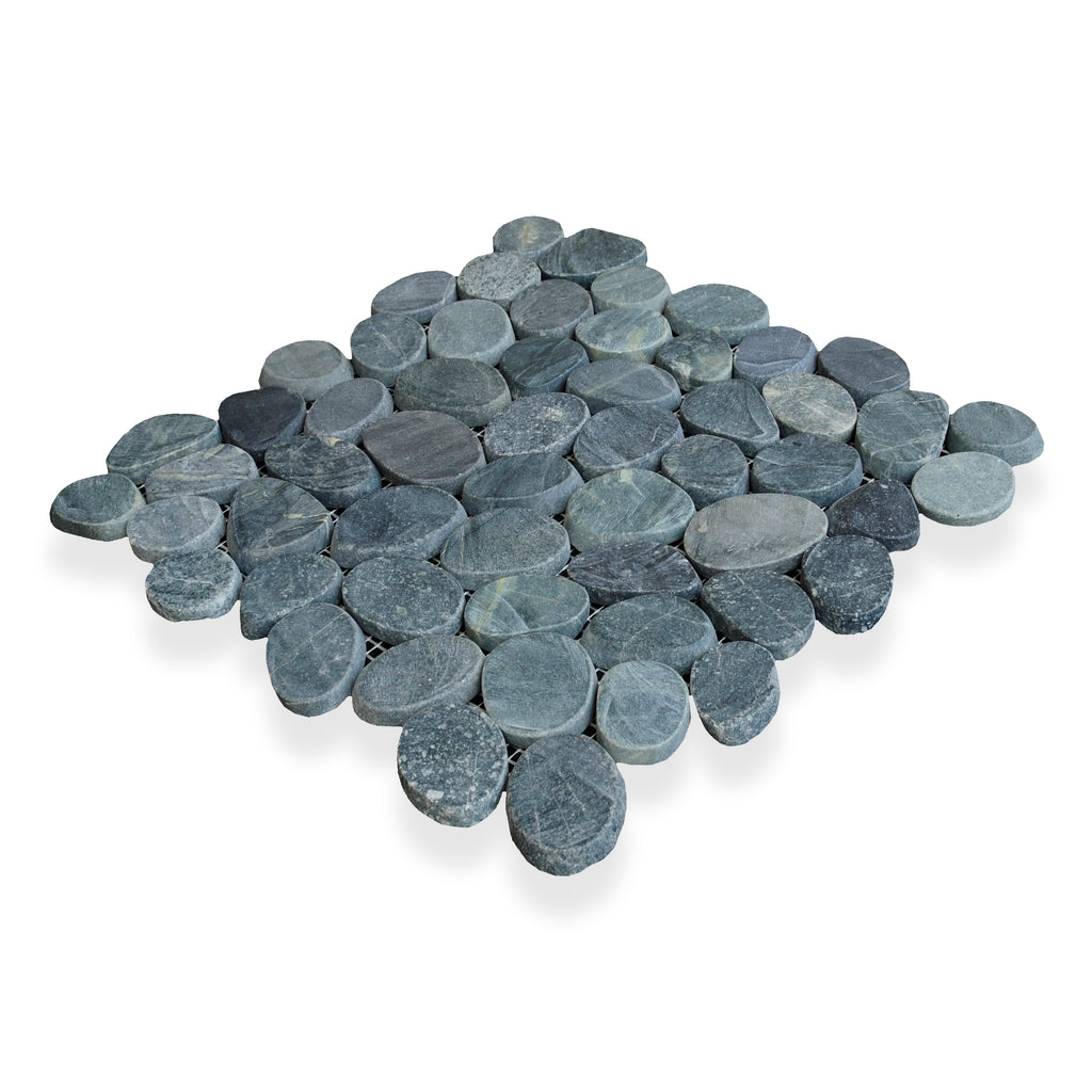 With expert craftmanship, Level Pebble tile has been sliced to a uniform thickness and individually placed on an interlocking mesh to achieve a flat surface that captures the natural aesthetic of stone pebbles. With a palette of monochromatic neutrals and bold mixes, this tile provides inspiration for a variety of decor.